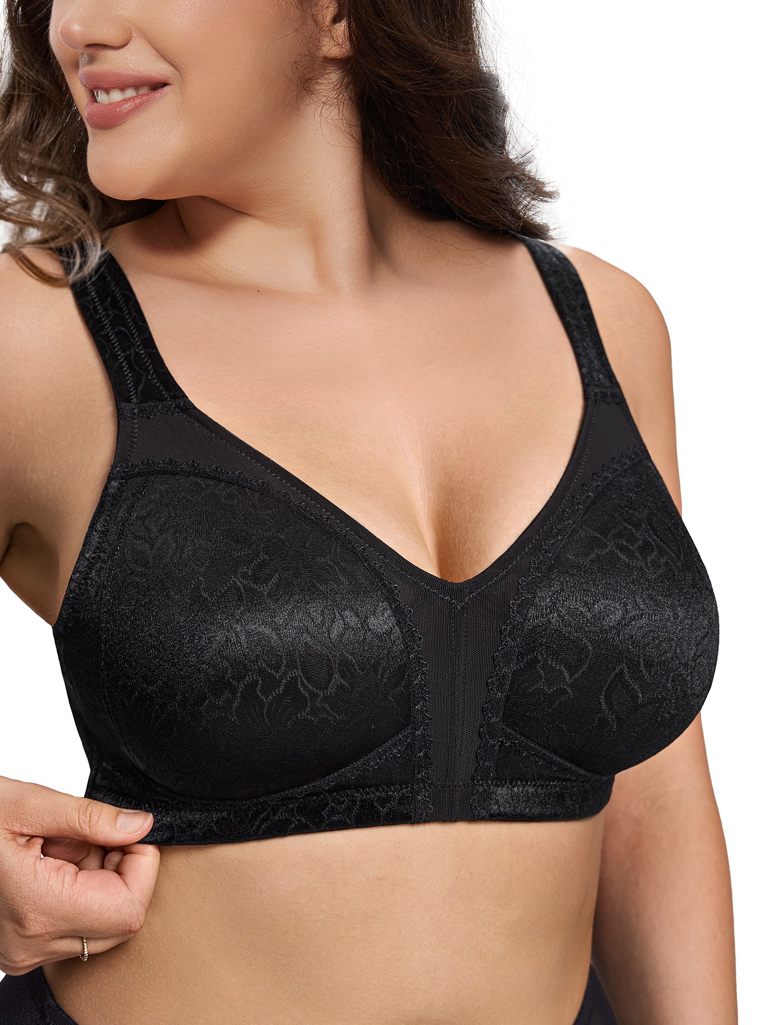 Deyllo Women Plus Size Minimizer Bra Soft Cup Wire-Free Bra Comfort Support Large Bust Black Bras