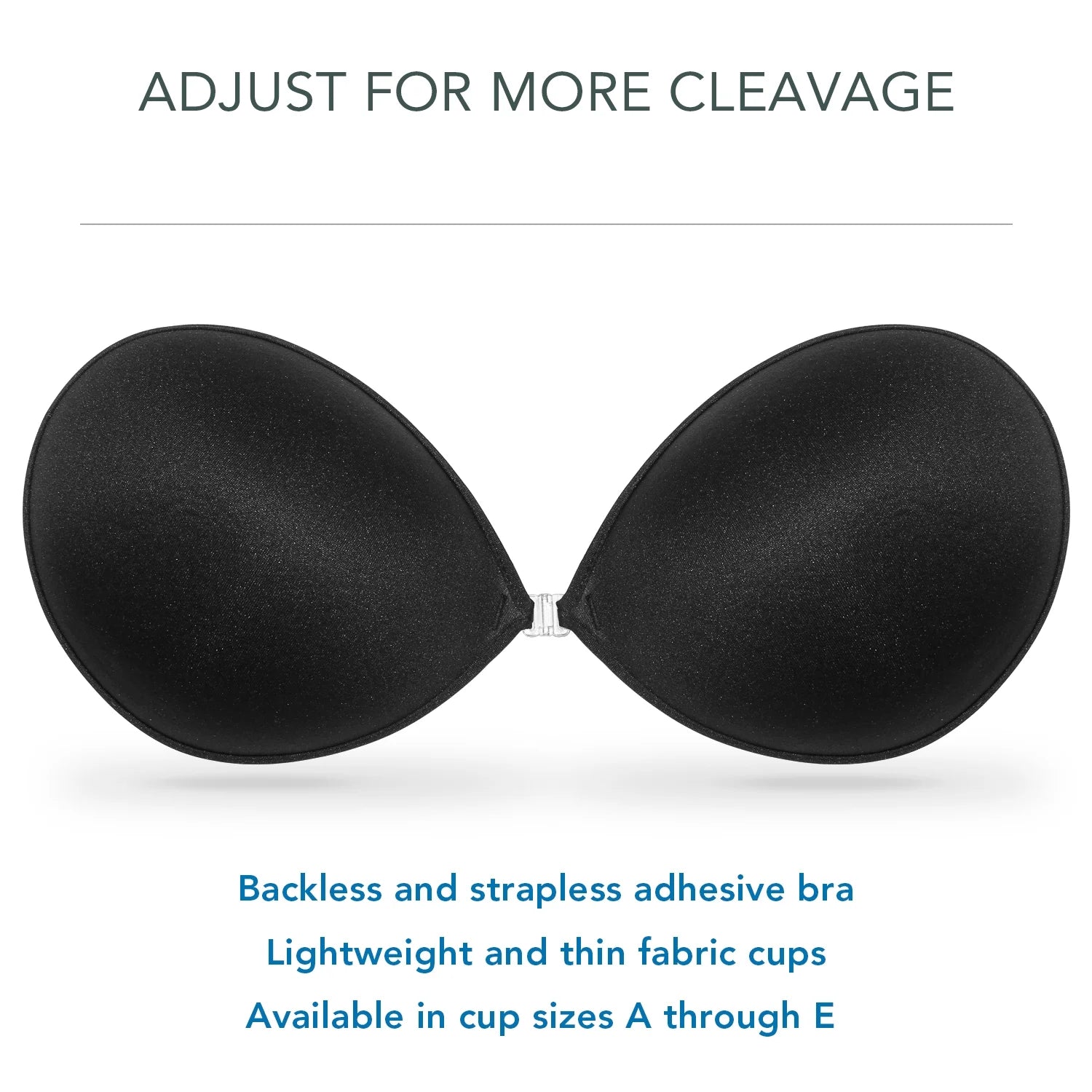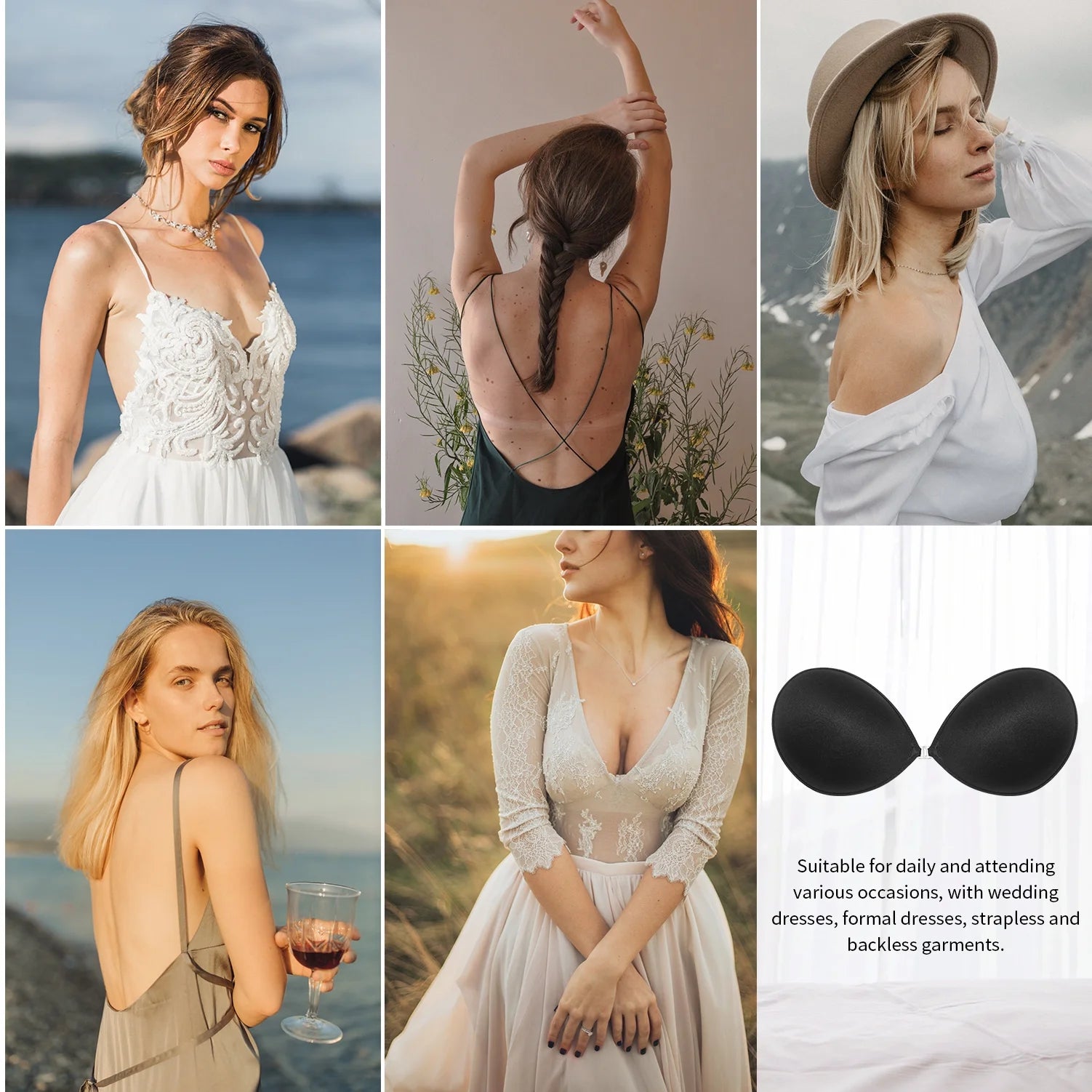 Wingslove Adhesive Bra Reusable Backless Strapless Push-up Silicone Invisible Sticky Bras for Backless Dress,Black