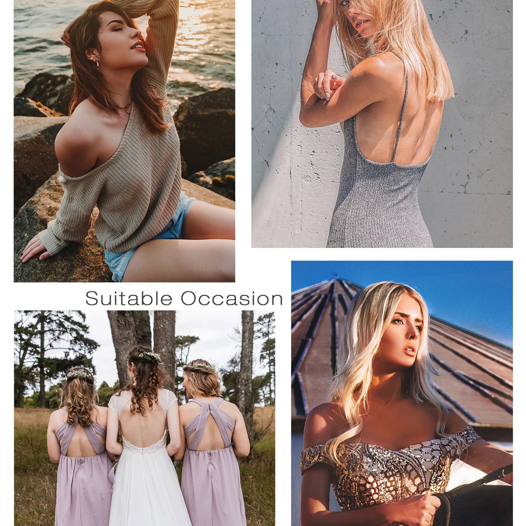 - Self-adhesive bra cups, not easy to fall off, freely, with reality and soft feeling.