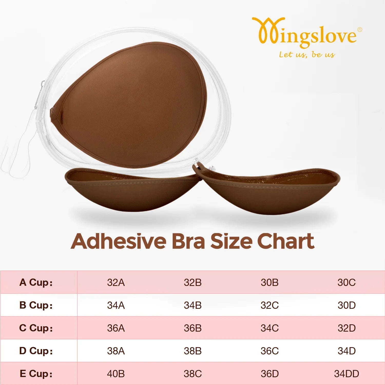 Wingslove Adhesive Bra Reusable Backless Strapless Push-up Silicone Invisible Sticky Bras for Backless Dress,Coffee