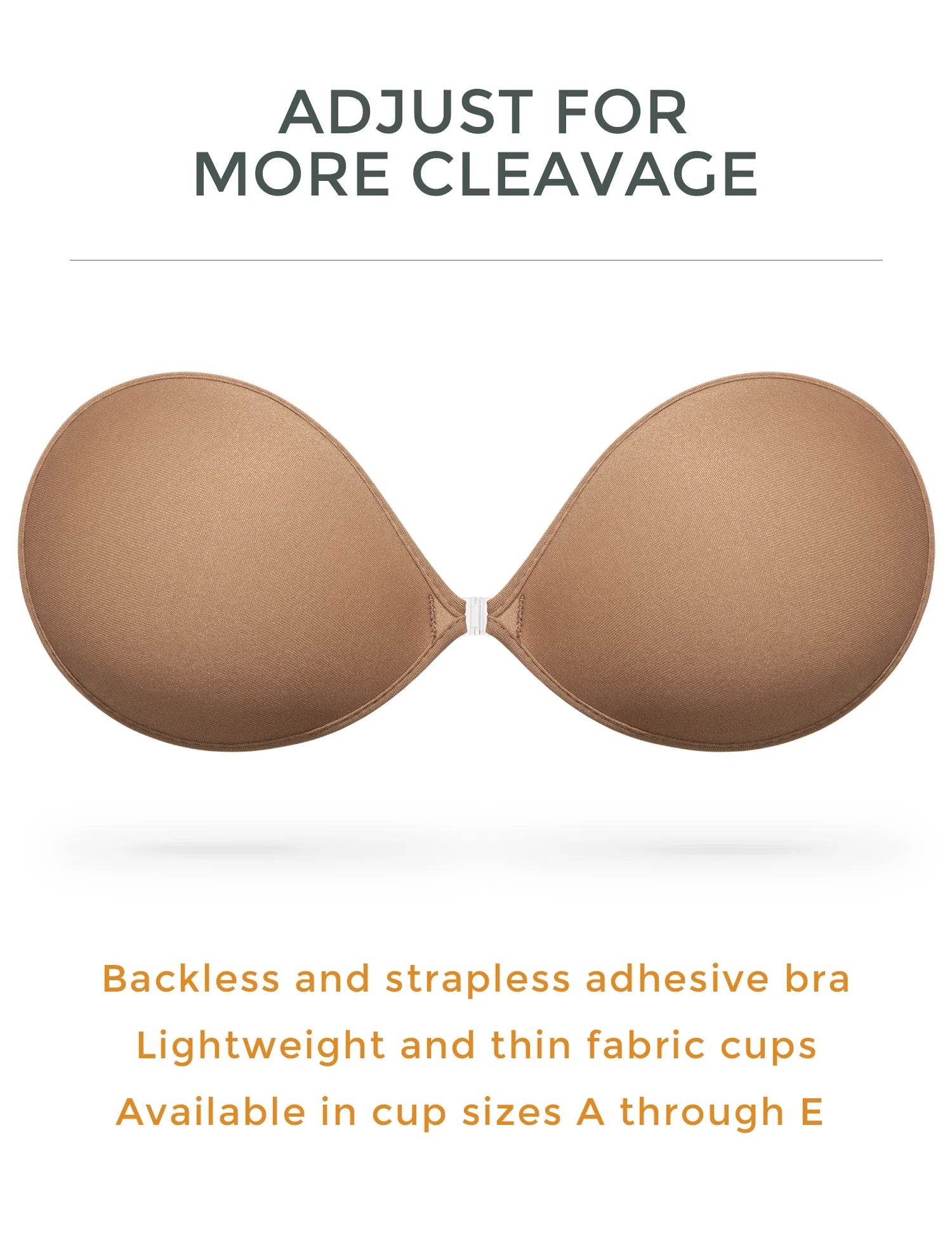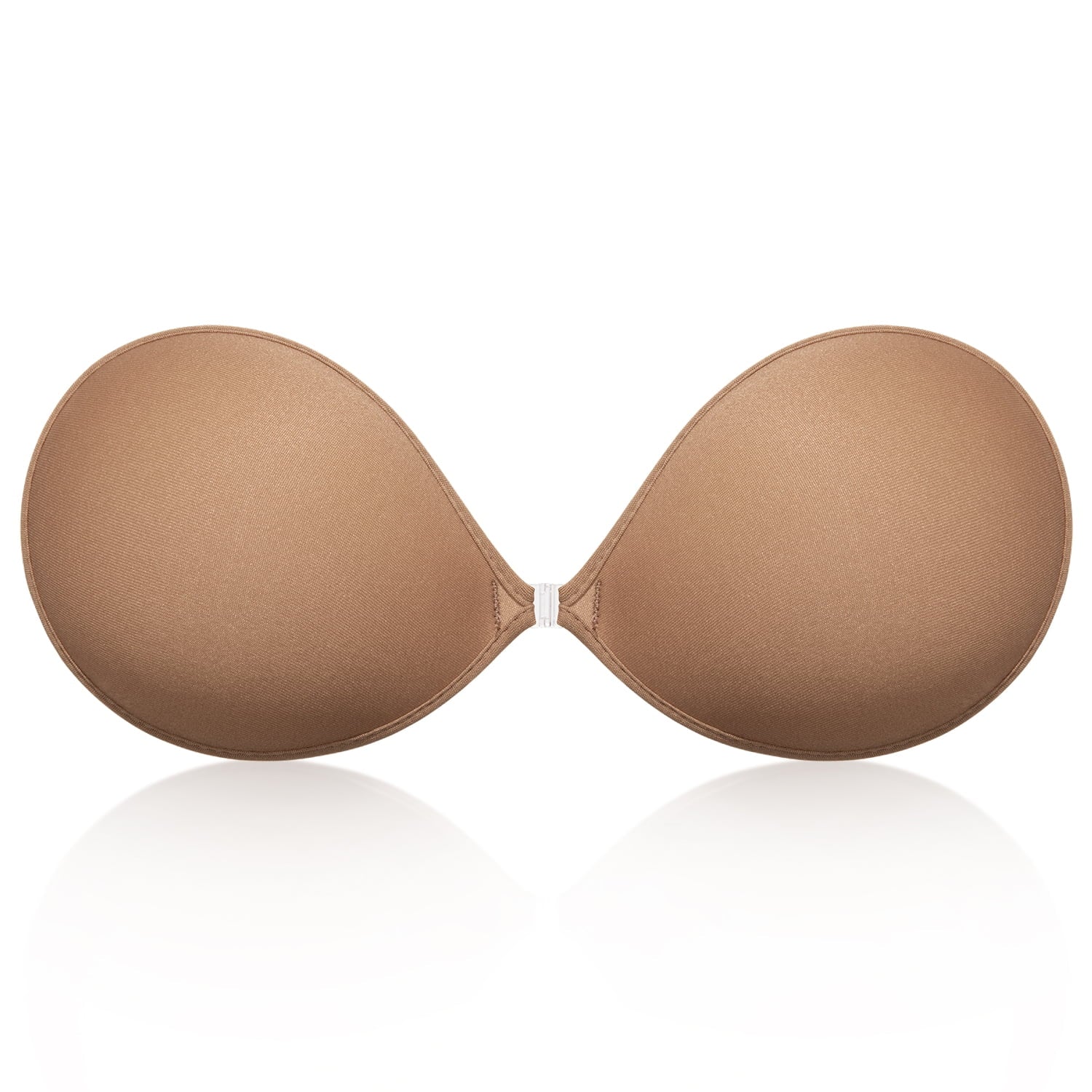 Wingslove Adhesive Bra Reusable Backless Strapless Push-up Silicone Invisible Sticky Bras for Backless Dress,Milk Coffee
