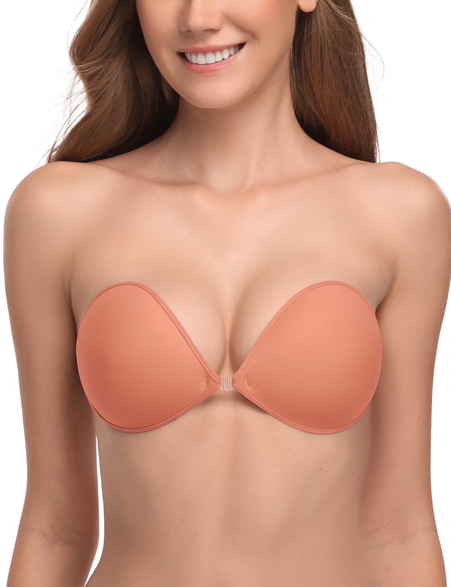 Wingslove Adhesive Bra Reusable Backless Strapless Push-up Silicone Invisible Sticky Bras for Backless Dress,Peach Blossom