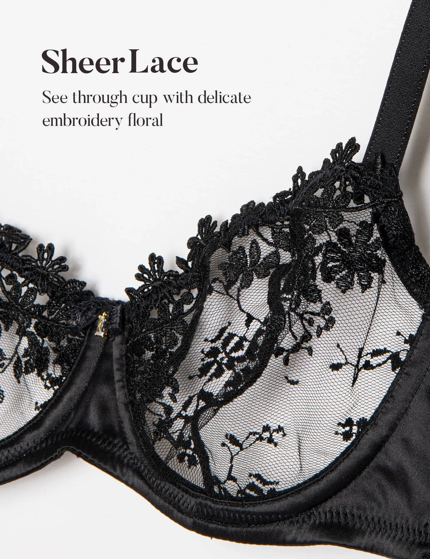 - Sheer Lace with delicate embroidery floral, see through lacy mesh cup make you look sexy charming.